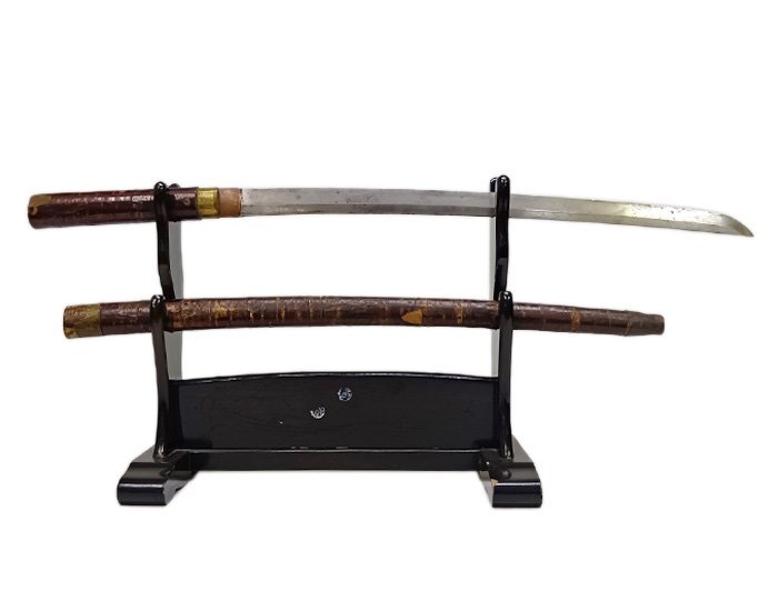 - 銘 豊後住藤原實行 わきざし 脇差 日本刀 小刀 小太刀 刀剣 短刀 名刀 真剣 桜皮鞘 銅ハバキ 武具 歴史物 刃渡り52.6cm 反り1.1cm 登録証有