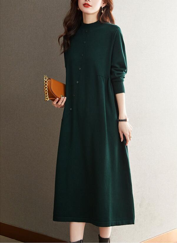 - 新品*上質 ニットワンピース レディース セーター 長袖 きれいめ 高級感 気質 通勤 着痩せ ロング丈 ニットワンピース*グリーン
