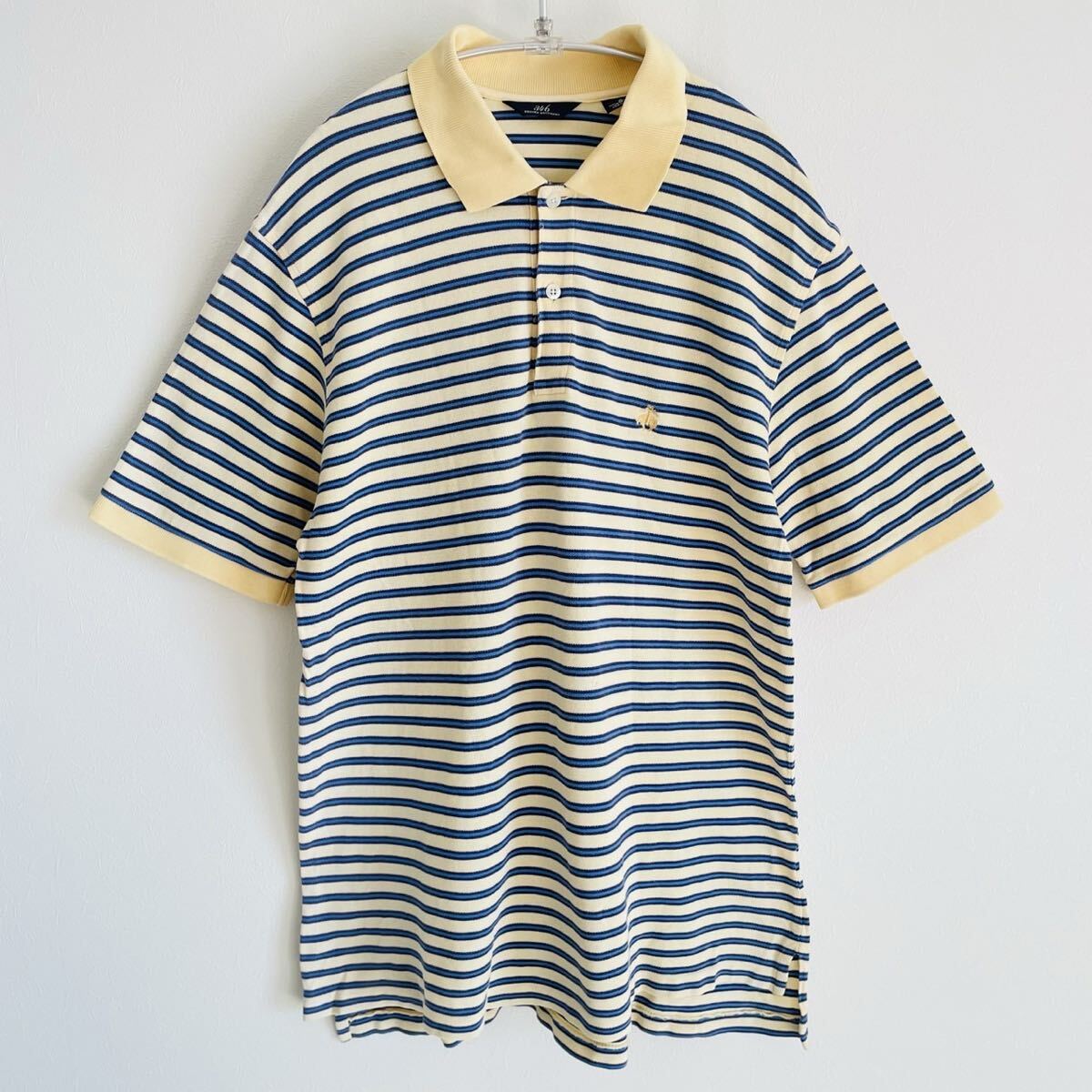 - 【ブルックスブラザーズ/346】オーバーサイズ/M/ポロシャツ/ボーダー柄/鹿子/ワンポイント刺繍/黄×青/衝撃プライス!1点限定販売★A77