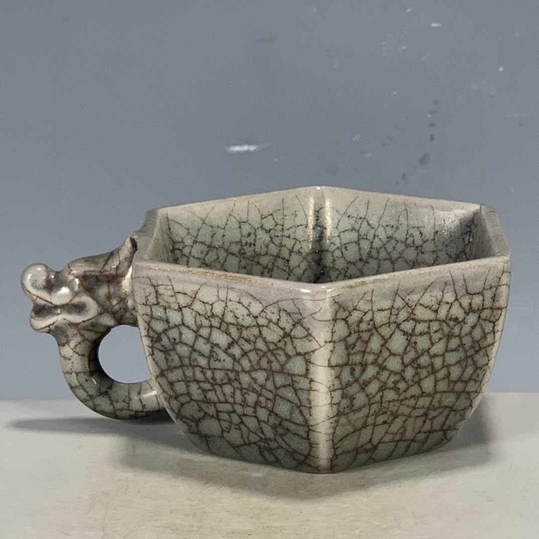 - 宋官窯 六角竜頭主人杯 茶碗 青磁 茶碗 コーク窯 天青 煎茶道具 秘色釉 茶器 中国 宋磁器 賞物 極細工 置物