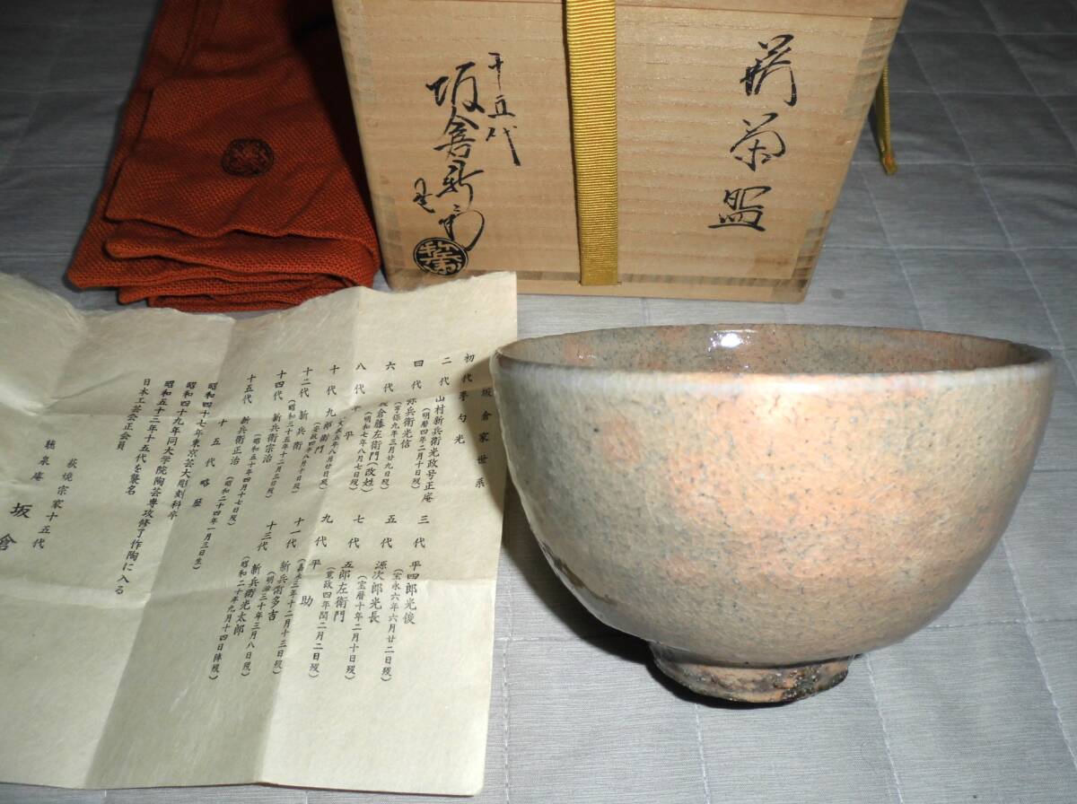 - 十五代 坂倉新兵衛 萩茶碗 本人作 共箱共布共栞 保証品/三輪休雪 出雲焼 慶造 坂田泥華 書付 和彦 田山方南 鬼萩 陶兵衛 吉田松陰 香月泰男