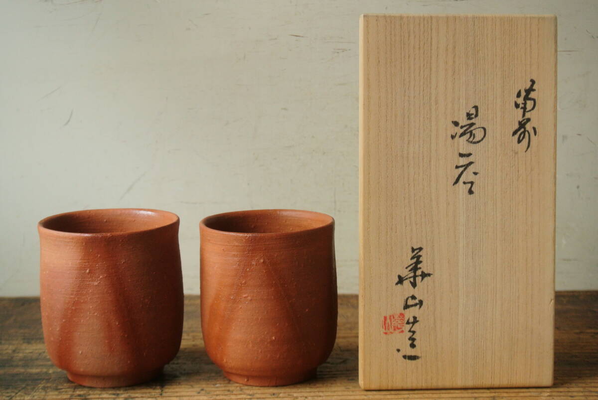 岡山県無形文化財 松田華山 備前湯呑 共布 共箱