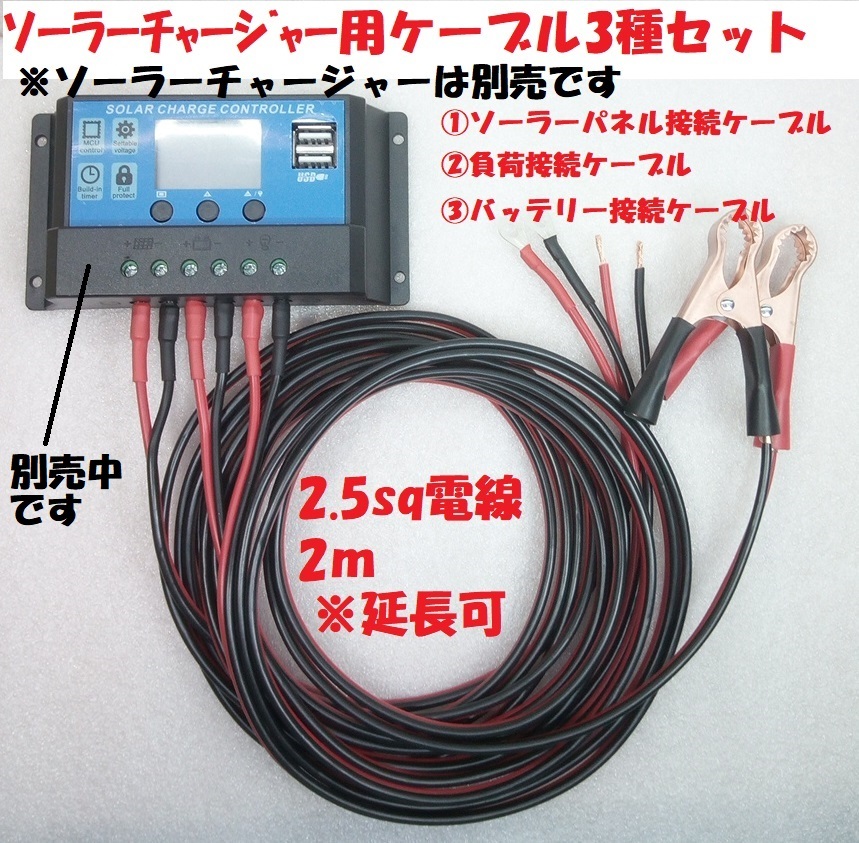 - ソーラーチャージコントローラー用接続ケーブル3種【送料230円】