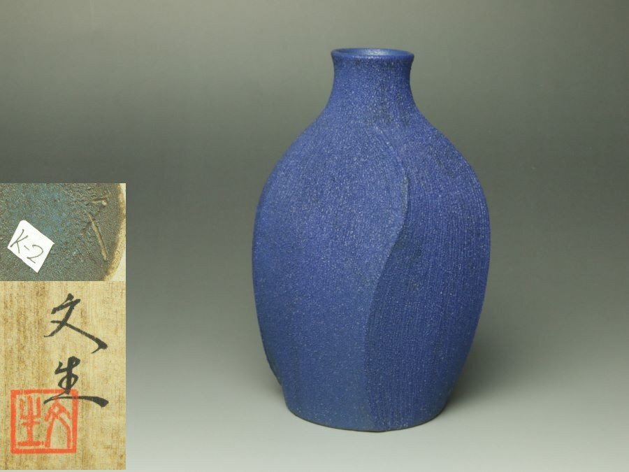 > ■三和堂■松谷文生 No.4 蒼酒器 共箱 徳利 片口 現代アート 秀逸作! 現代的なデザイン!!