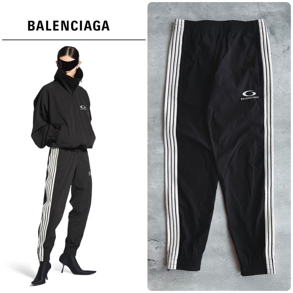 - 2025SS BALENCIAGA バレンシアガ トラックパンツ 5サイドライン サイズ34 831559TRO311000 ブラック ジャージ ロゴ刺繍 デムナ