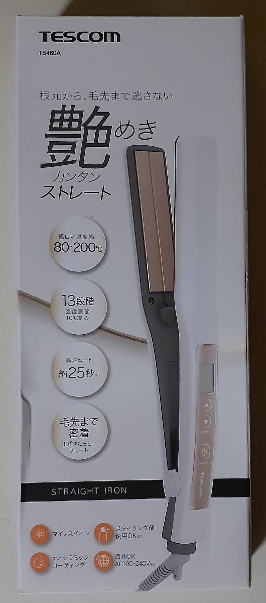 6702 TS460A-W TESCOM マイナスイオン ストレートアイロン 根元から、毛先まで逃さない 艶めきカンタンストレート スタイリング剤使用OK