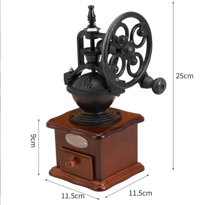 - 人気品手挽き コーヒーミル セラミック刃 手動 家庭用 木製 粗さ調節 レトロ 観覧車式 インテリア