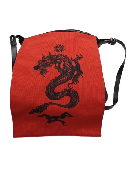 - (GA2378)【1円スタート】 Jean Paul GAULTIER ジャンポールゴルチエ ショルダーバッグ リバーシブル 龍 ドラゴン ブラック レッド慶