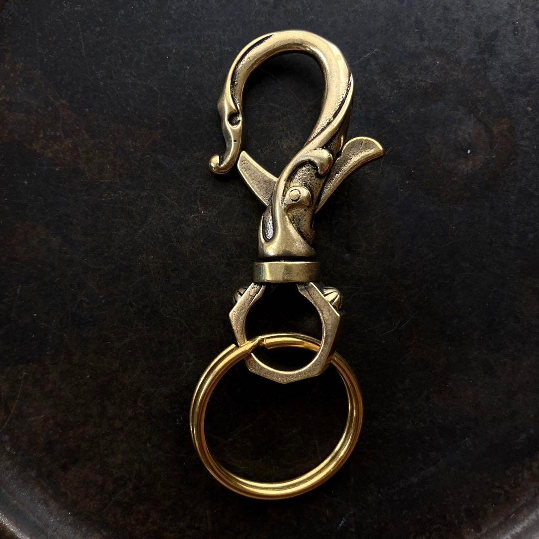 - 202 真鍮 キーホルダー キーリング カラビナ フック レバーナスカン 唐草 ビンテージ レトロ アンティーク アクセサリー ハンドメイド