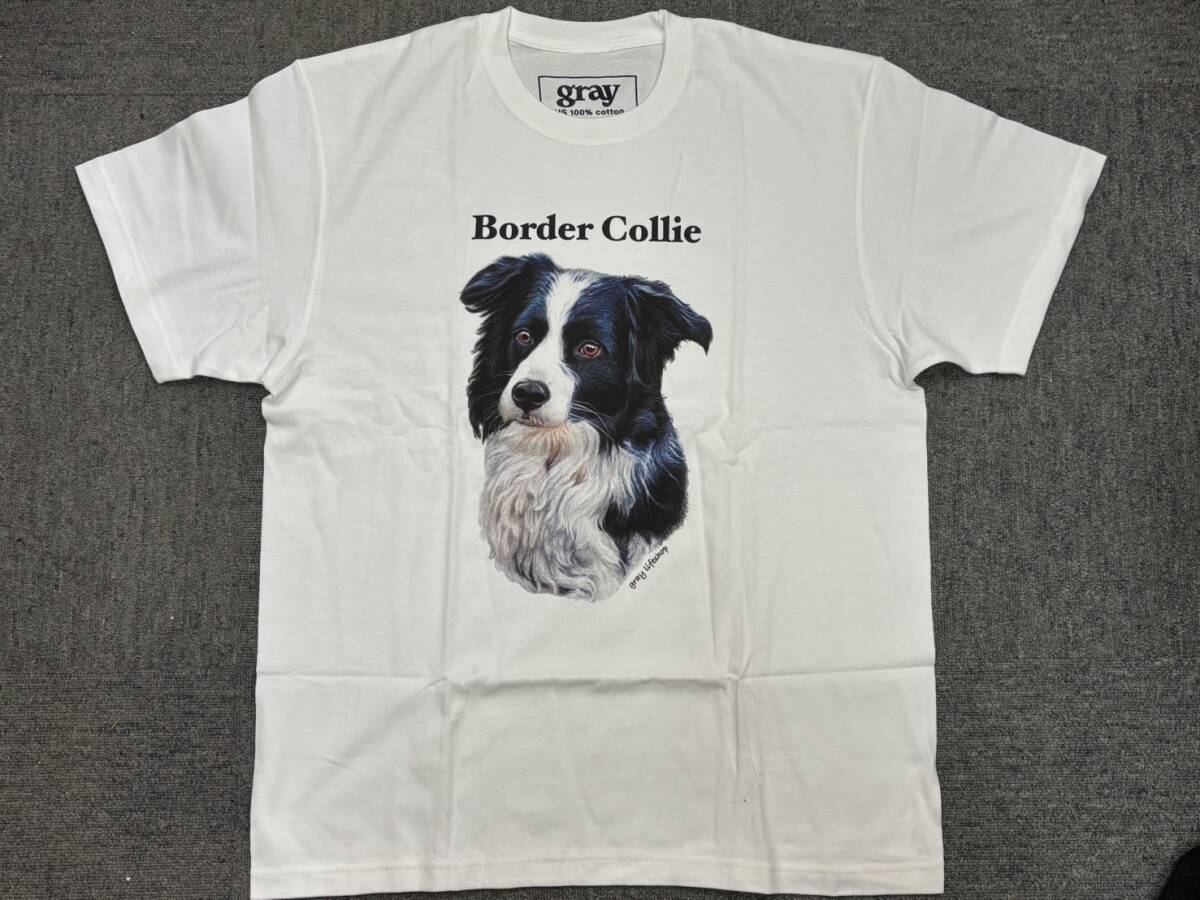 - Tシャツ ボーダーコリー 犬 プリント 男女兼用 Mサイズ gray us 100% cotton