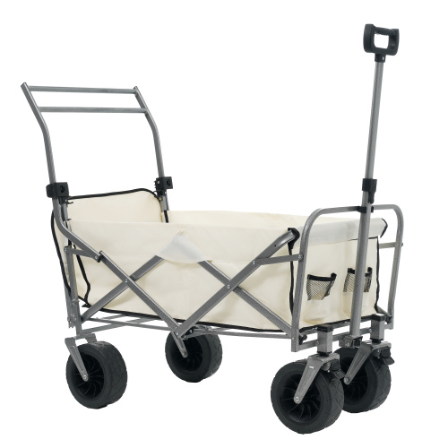 - 【ホワイト】両手ハンドル キャリーワゴン アウトドアワゴン 後ろ開け 折りたたみ コンパクト