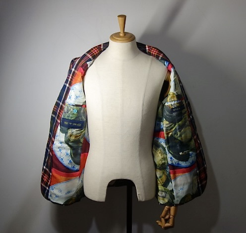 > TK 良品 イタリー製 エトロ ETRO チェック柄 テーラードジャケット 48 リネン コットン 裏地シルク