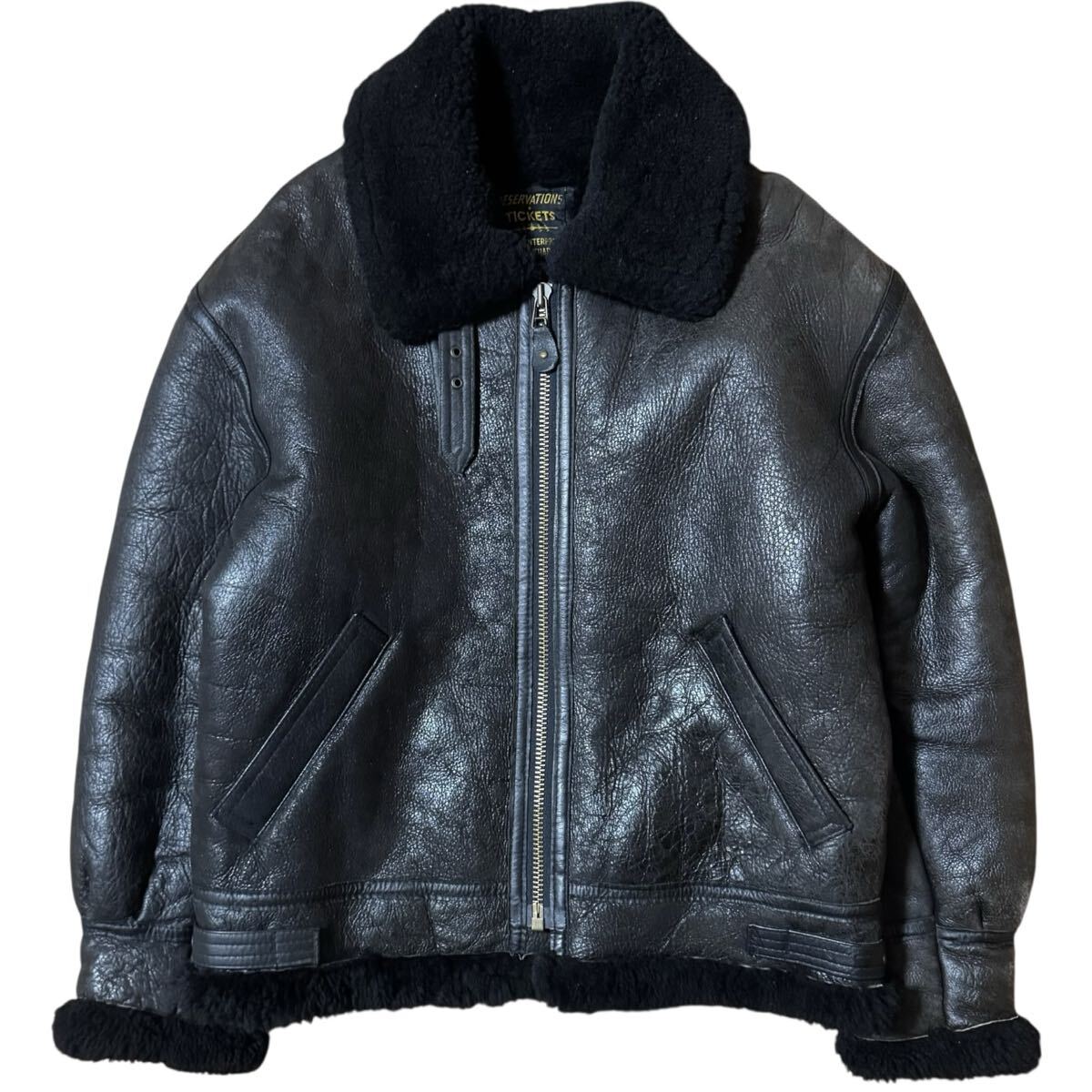 - 雰囲気抜群 RESERVATIONS 羊革 B-3 リアルムートン ボンバージャケット オールブラック Mサイズ フライトジャケット