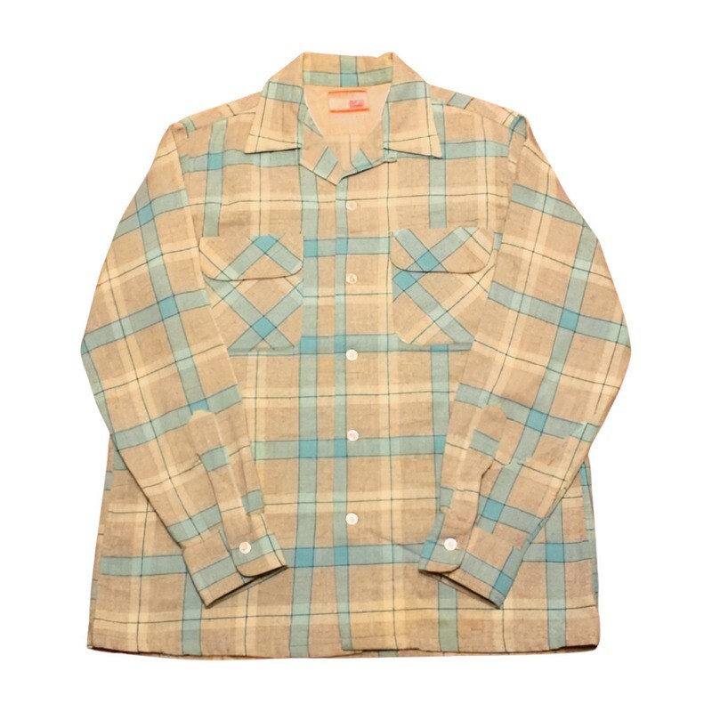 > 60’s LEVI'S オンブレチェック オープンカラー ボートシャツ ウールシャツ グレー×水色 表無(実M~L)