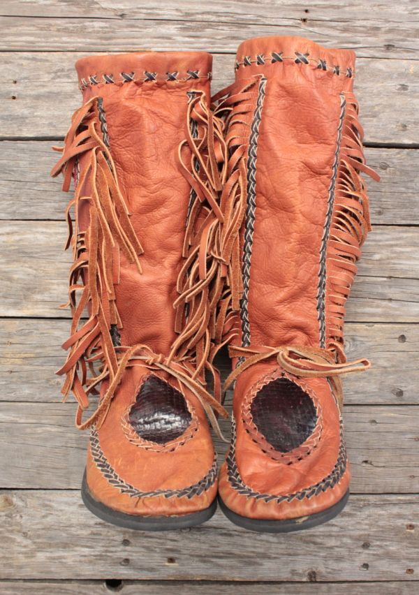 - ハンドメイド モカシンブーツ 茶 表無し(実25~25.5)