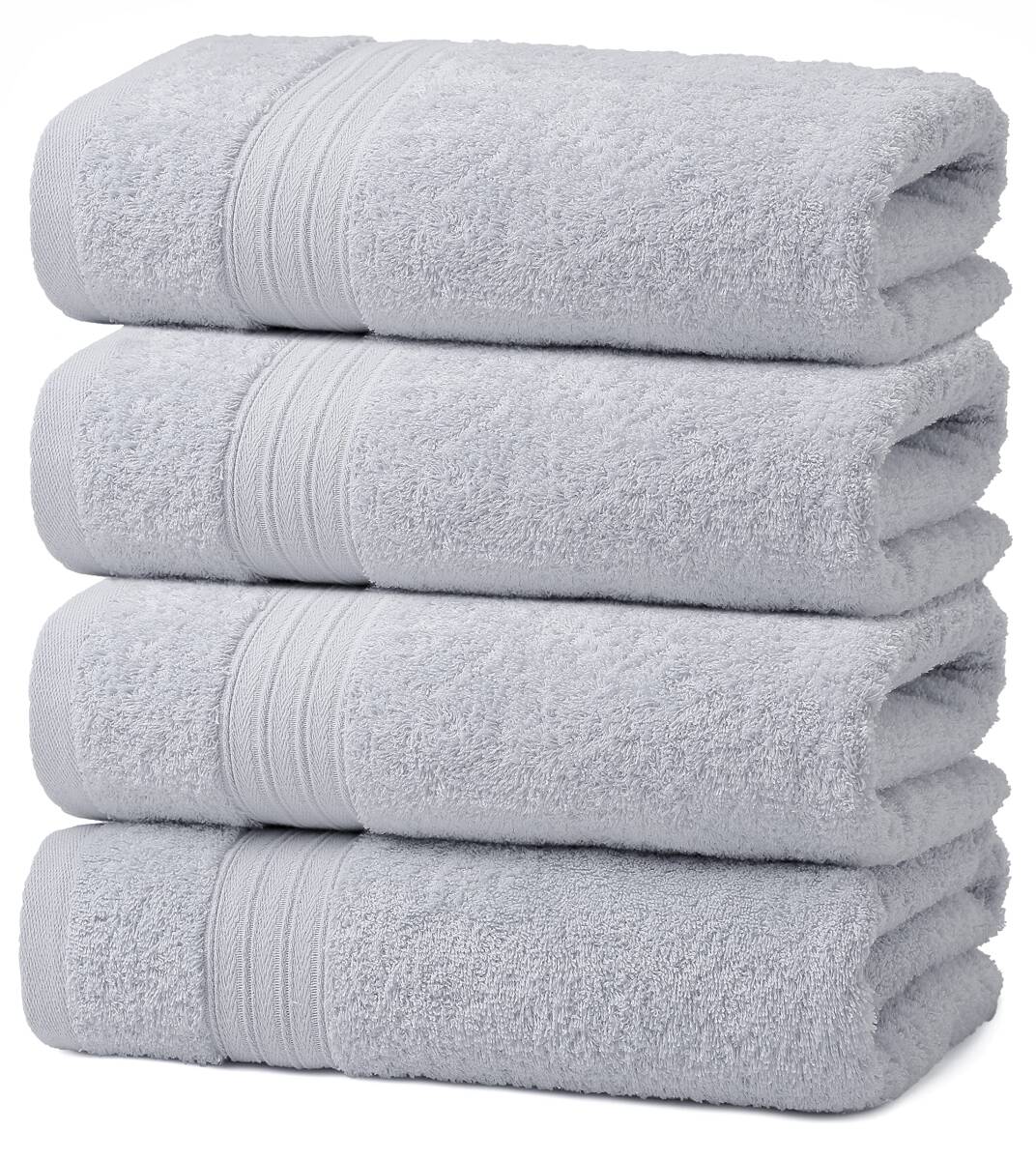 > 100% 綿 4枚 ホテルスタイル バスタオル セット タオル コットン ふわふわ ((バスタオル, ライトグレー)