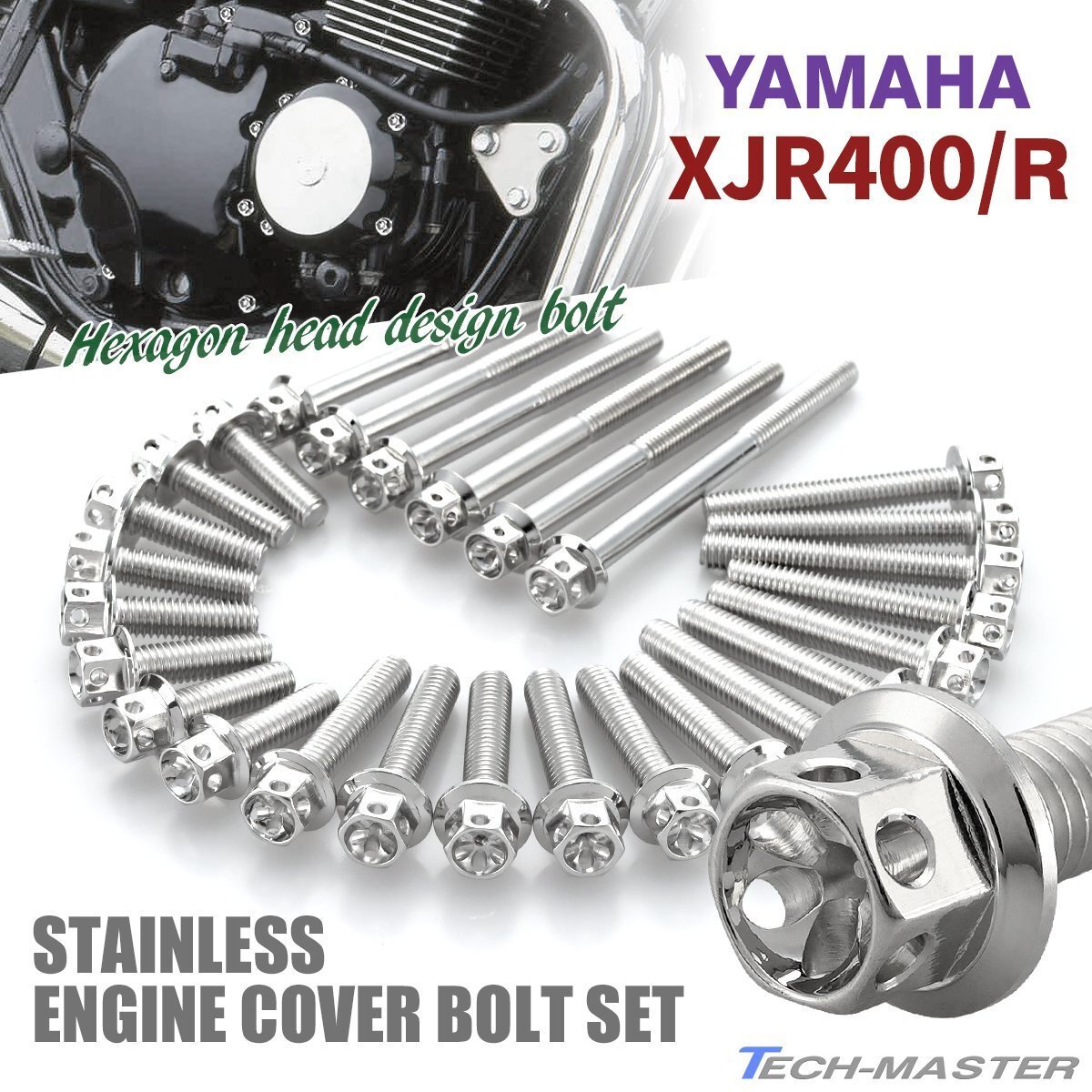 > XJR400 XJR400R エンジンカバー クランクケース ボルト 27本セット ステンレス製 ヤマハ車用 フラワーヘッド シルバーカラー TB7129