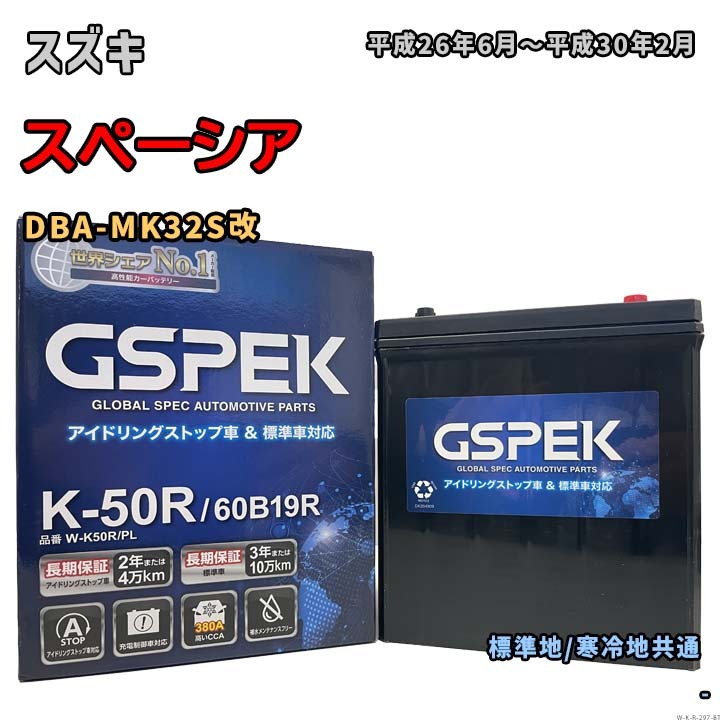 - バッテリー GSPEK W-K50R/PL スズキ スペーシア DBA-MK32S改 平成26年6月~平成30年2月 車いす移動車 対応 K-42R 互換 297