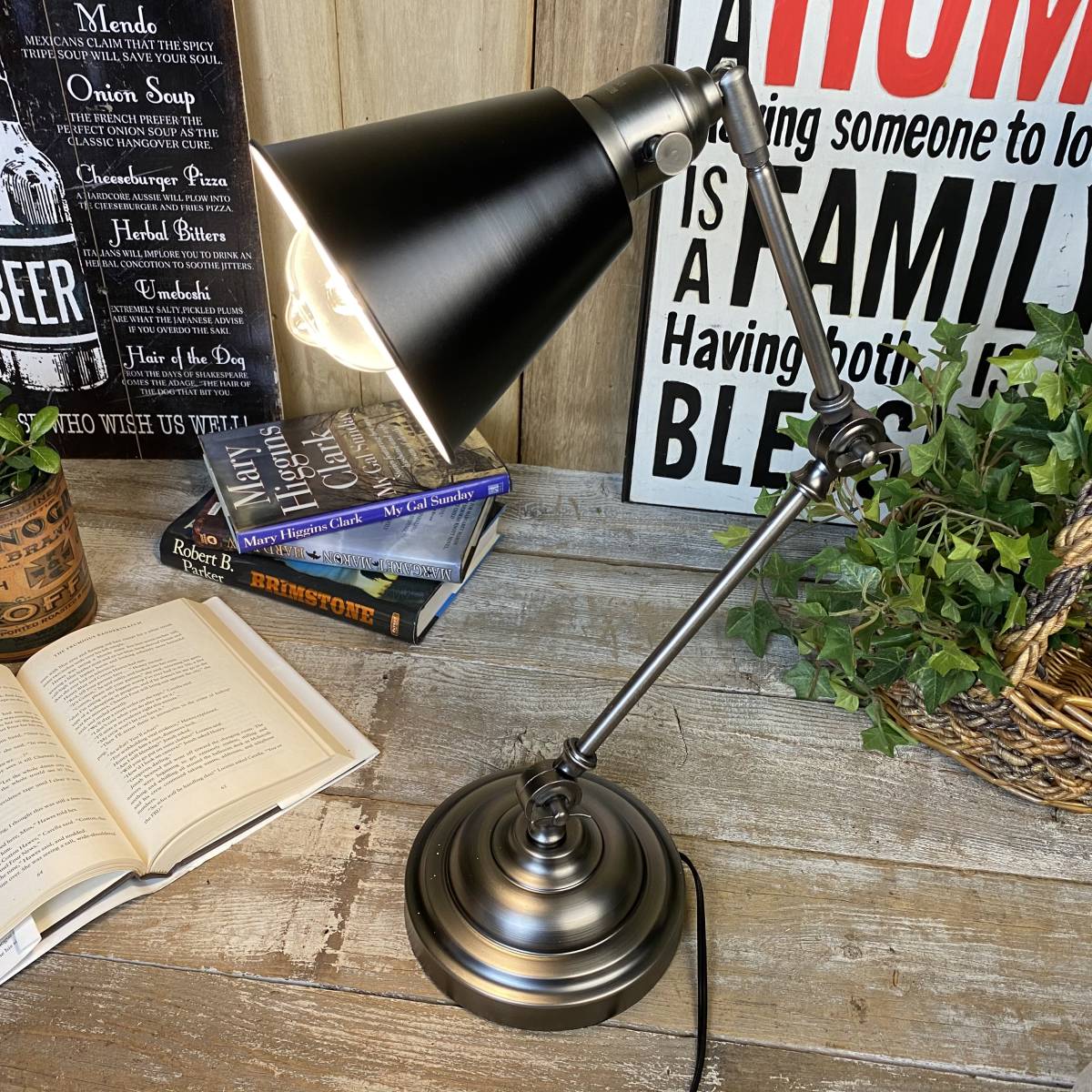 - 送料無料、インダストリアル電気ライトスタンド、卓上デスクランプ、ブラックシルバー☆照明☆アンティーク,ビンテージ風、LED電球対応