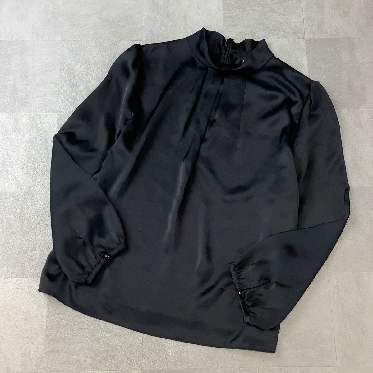 > 美品 MICHEL KLEIN ミッシェルクラウン スタンドカラー デザインブラウス レディース 38 M ブラック