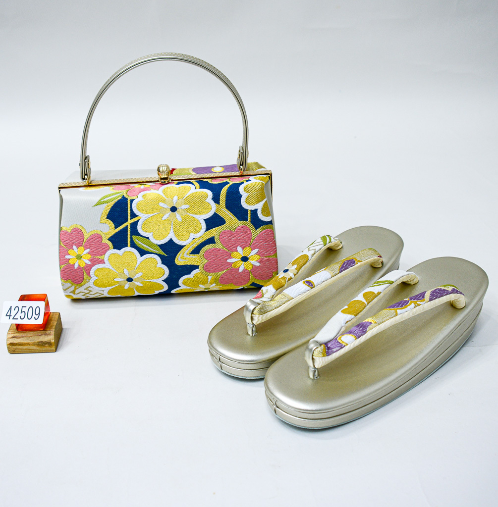 - 草履バッグセット 帯地 二段 フリーサイズ 23.5cm 適合足サイズ22.0cm~24.0cm 金色 フォーマル 礼装 結婚式 (株) 安田屋 NO42509