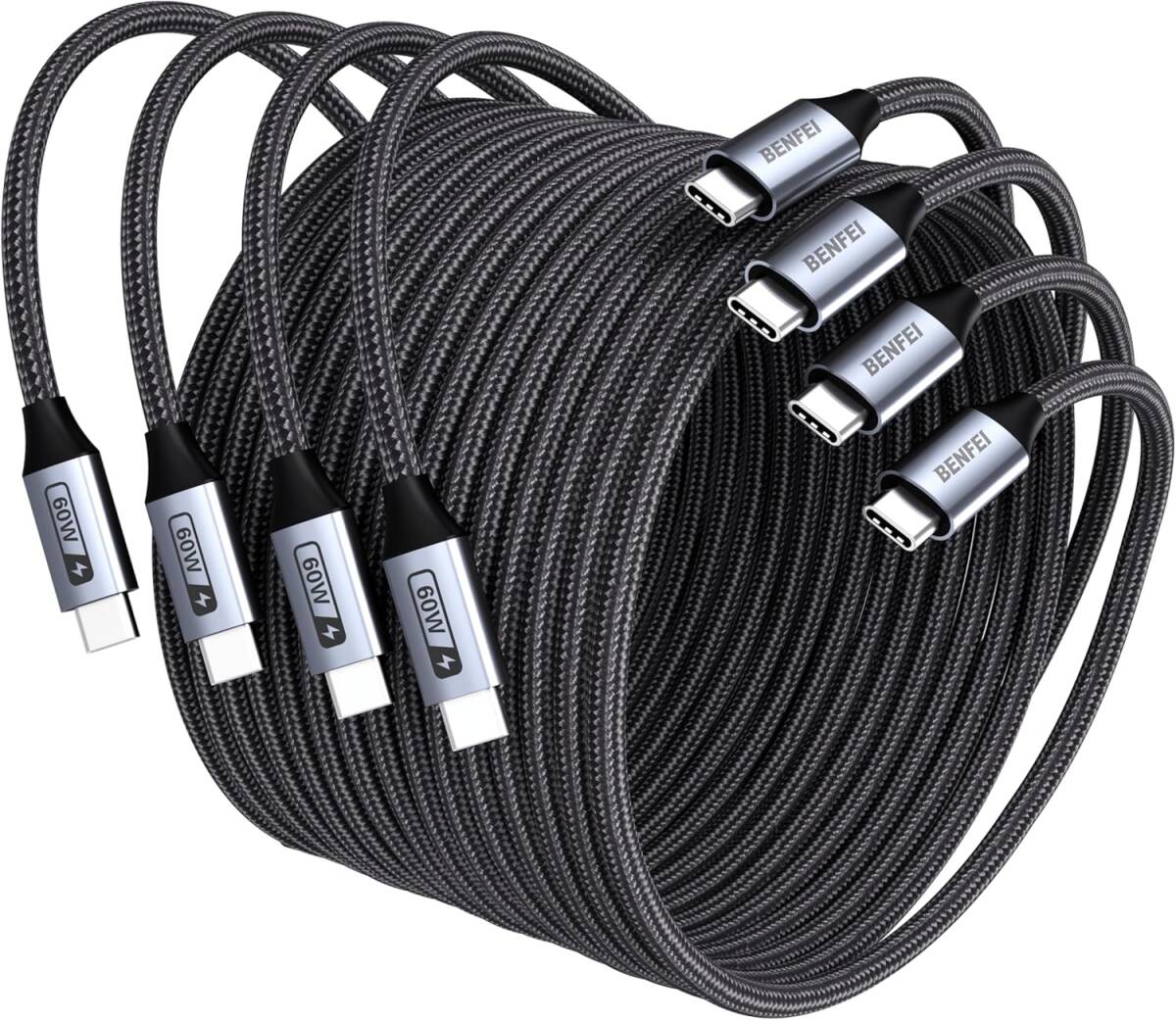 - BENFEI USB-Cケーブル 60W高速充電 4本セット (1M×2+2M×2 ブラック) 高い耐久性を実現するナイロン編組 充電とデータ転送快適