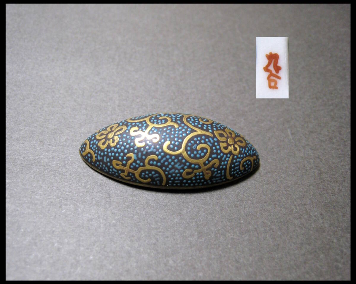 - 九谷焼 青粒 花唐草 絵付け 帯留 伝統工芸品 着物 帯飾り 和装小物