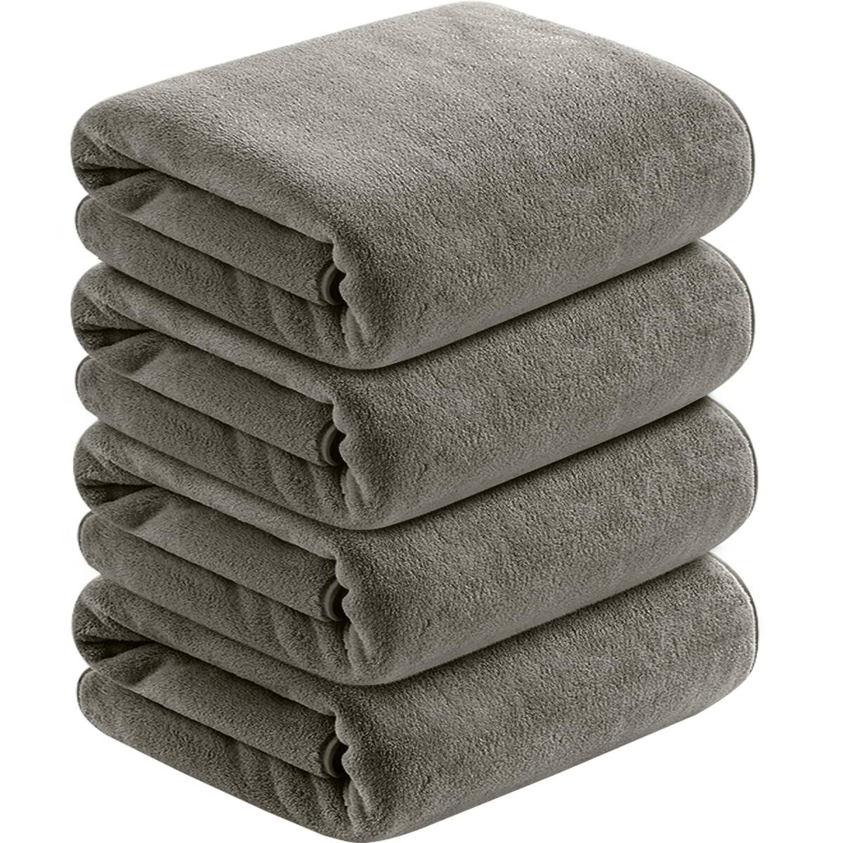 - 大判 60*120cm ホテル仕様 4枚セット ふわふわ タオル マイクロファイバー 吸水速乾 バスタオル 肌触り(グレーブラウン