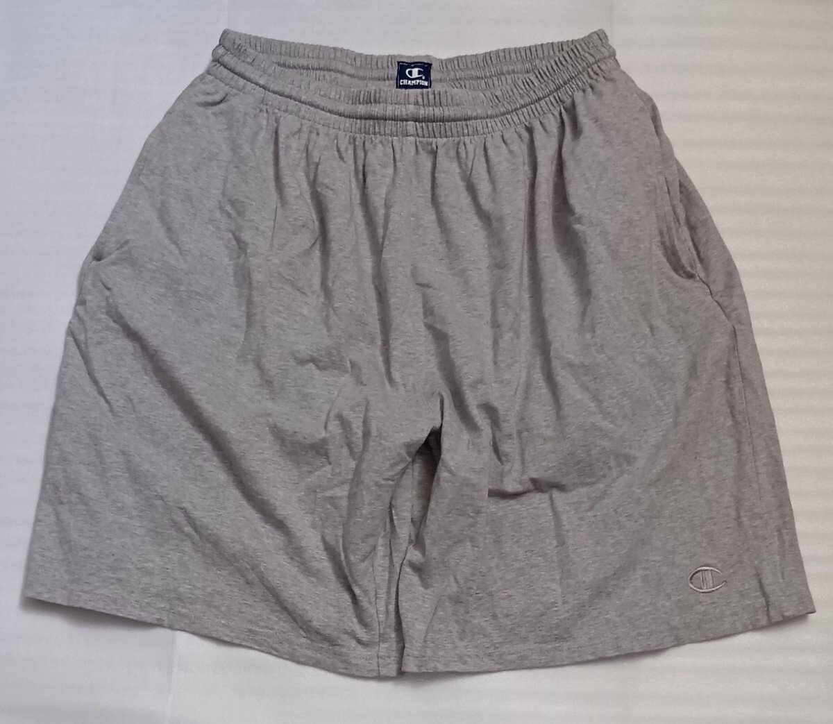 > ☆Champion サイズXLショート短パンツ半ハーフ伸縮ストレッチ軽量ズボンGLAYグレイ刺繍ワンポイントLLスポーツ洗濯済ボトムス チャンピオン