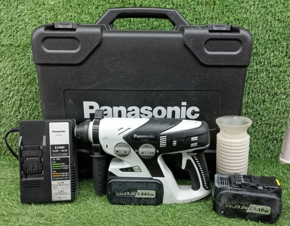 - 中古品 Panasonic パナソニック 28.8V 充電ハンマードリル + バッテリー 2個 + 充電器 + ケース セット EZ7880LP2S-B