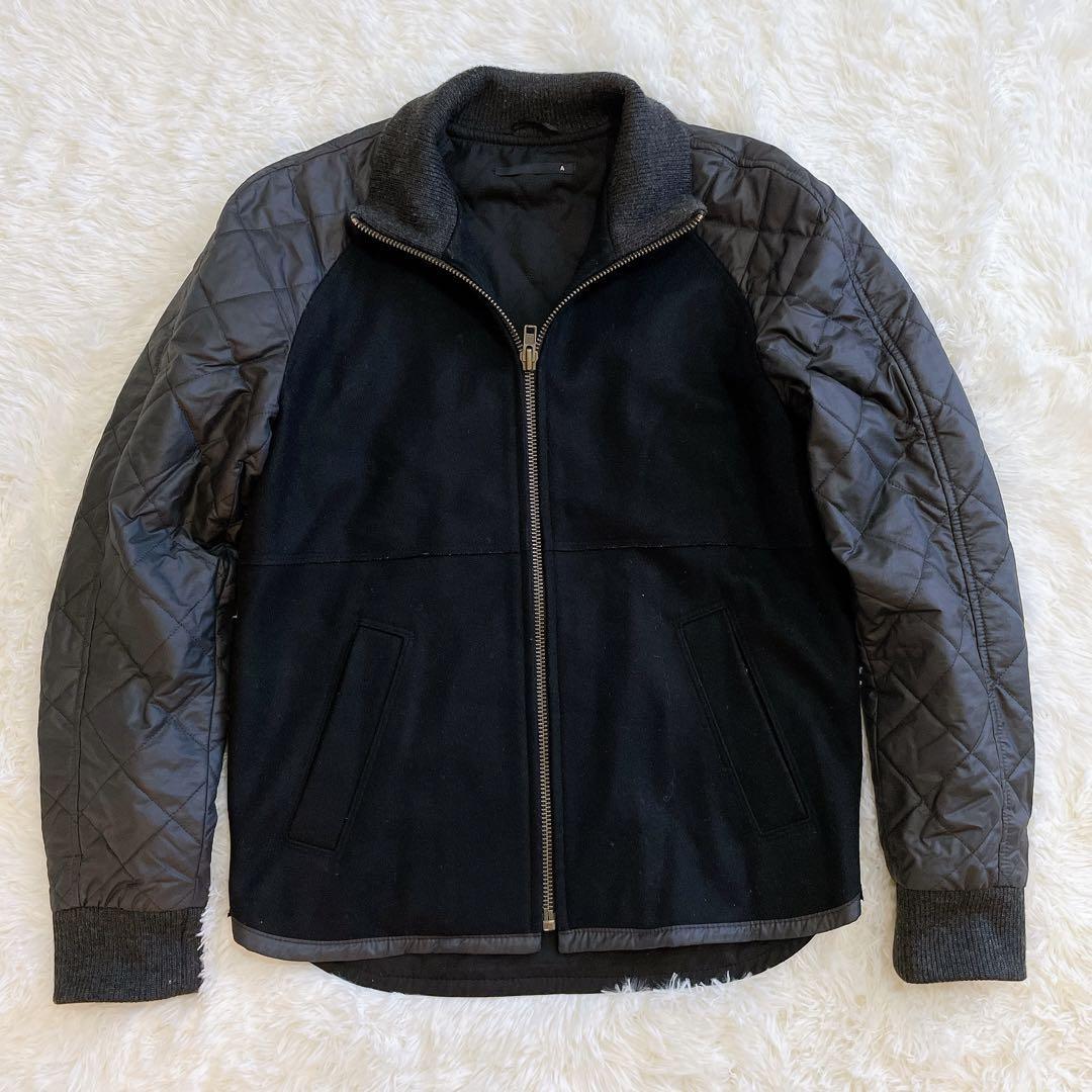 > AVALONE アヴァロン 切替デザイン ブルゾン ジャケット キルティング 46サイズ 黒 ブラック 袖切替 異素材コンビ ジップアップ