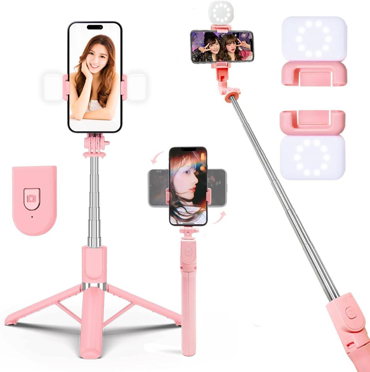 - ファッション 高輝度LEDライト付き自撮り棒 三脚/一脚兼用 5段伸縮 折りたた