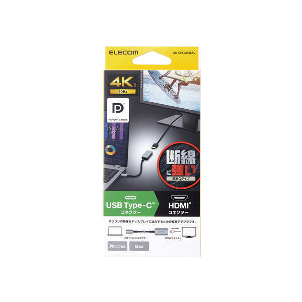 > 映像変換アダプター 高耐久タイプ USB Type-Cコネクタ搭載機器の映像信号を変換、HDMI入力コネクタ搭載機器などに出力可能: AD-CHDMIQSSV