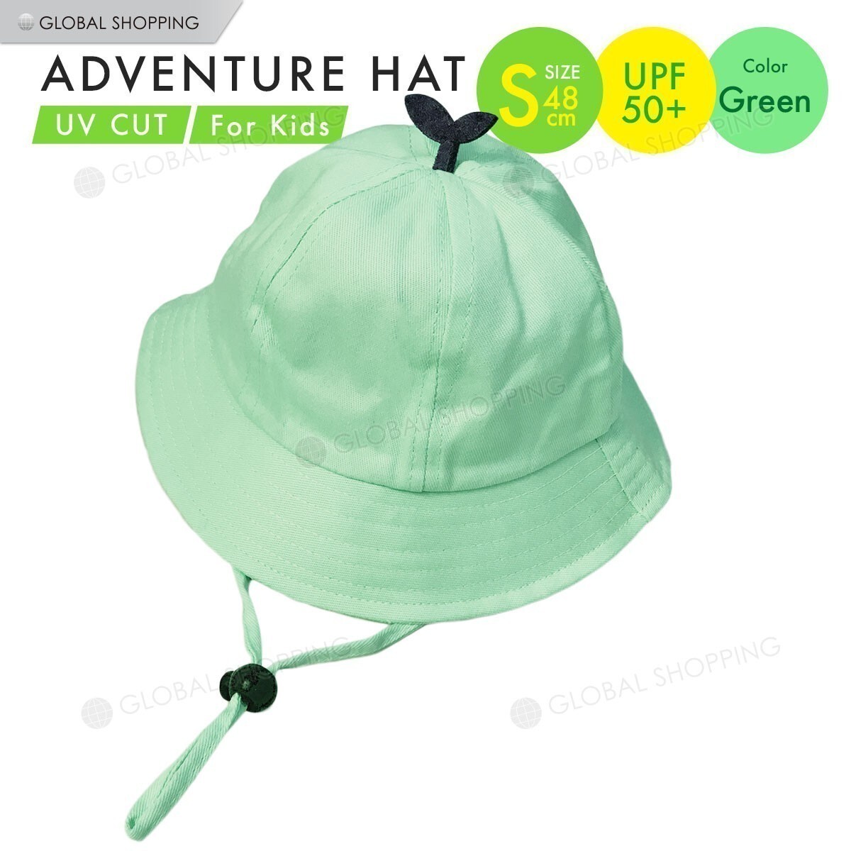 > ハット 赤ちゃん用 帽子 夏 子供 子ども 赤ちゃん ベビー 男の子 女の子 あごひも付き 散歩 外遊び 公園 Sサイズ 48cm 緑 グリーン