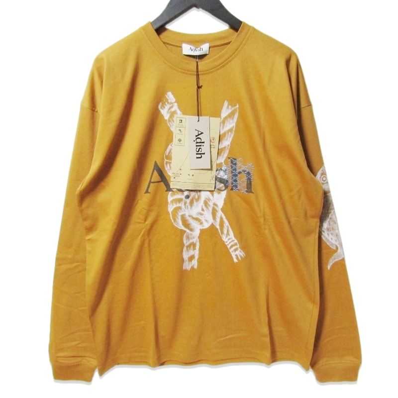 > 未使用 Adish アディッシュ Small Talk Jersey Long Sleeve AXSTJLSB003 長袖Tシャツ プリント スモール トーク キャメル L 27111206