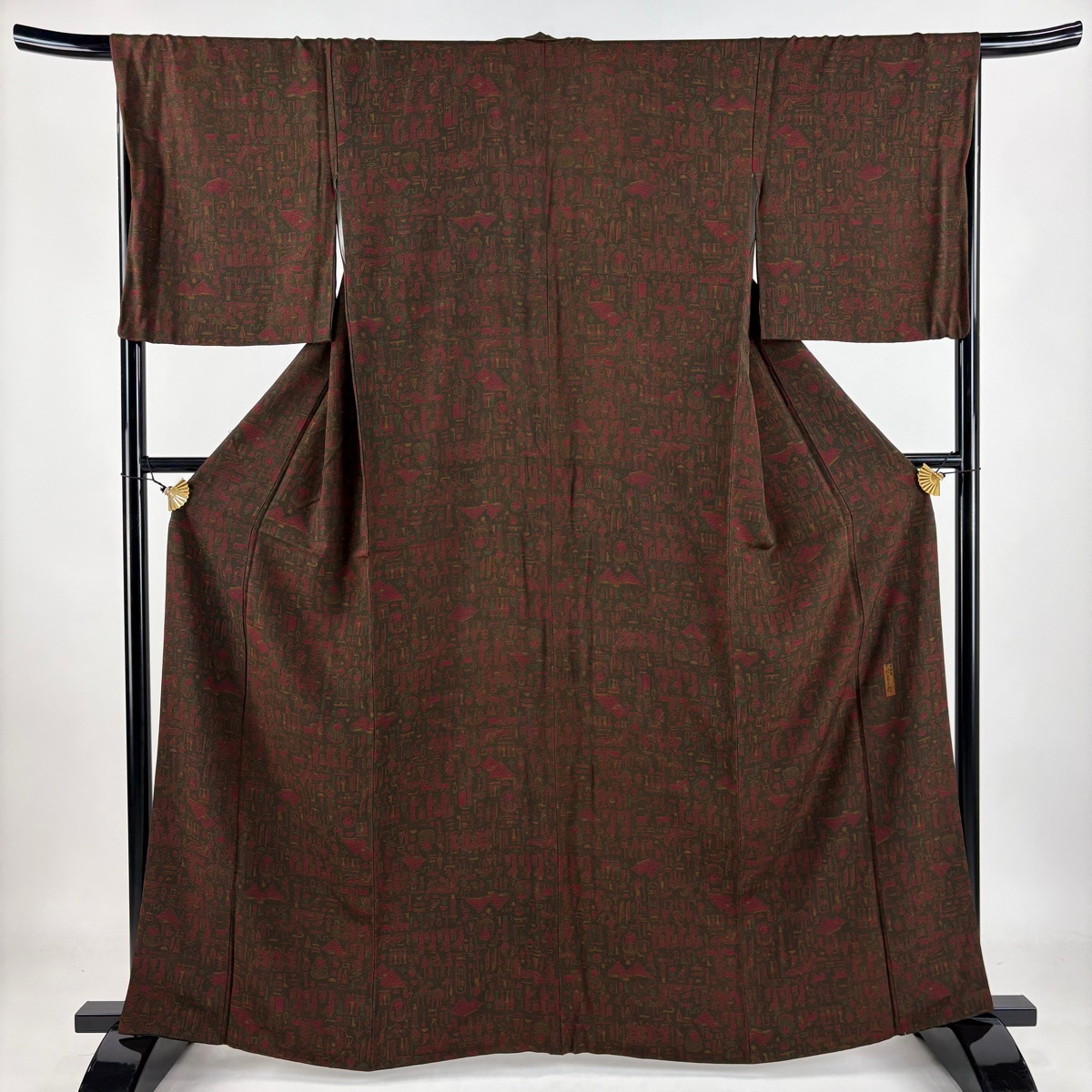 > 江戸小紋 身丈162cm 裄丈68cm L 袷 人間国宝 中村勇二郎 ツタンカーメン王 草木染 落款 コプト柄 焦茶色 正絹 逸品 【中古】