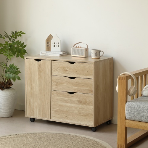 - キャビネット幅80 北欧 サイドボード チェスト キャスター付き 引き出し 3段 ワゴン タンス 扉付き 大容量 押入れ収納 棚 スリム テレビ台