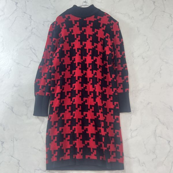 - 【L】 ジバンシィ 千鳥格子ニットワンピース ロング ハイゲージ リブ ウール レディース 赤 レッド GIVENCHY B1520
