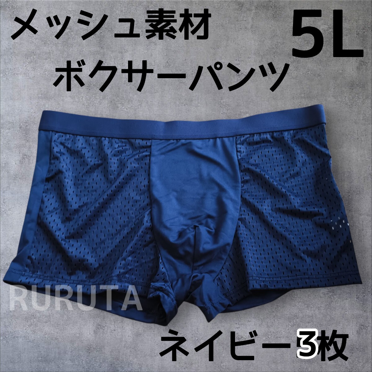 - 5Lサイズ 3枚セット メッシュ素材 ボクサーパンツ ネイビー 4XL表記