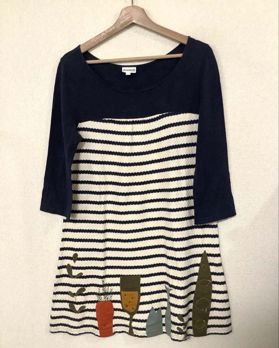 > jocomomola by シビラ ボーダー柄ワンピース ネイビー 昭和 セレクト レディース ミセス ワッペン付き