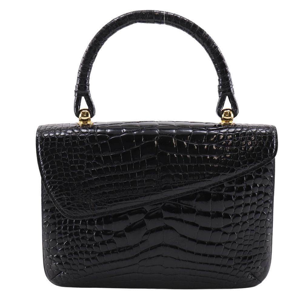 - LONGINES ロンジン ワンハンドル ハンドバッグ クロコダイル 黒 レディース【H181225780】中古