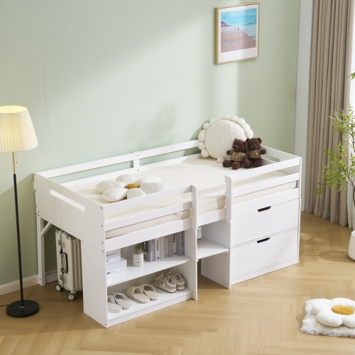 - シシステムベッド シングル ロータイプ ハシゴ すのこ 引き出し システムベッド 本棚 収納 ブックシェルフ 子供ベッド ロフト 木製ベッド