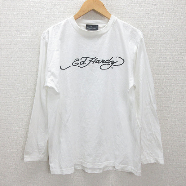 - G■エドハーディー/EDHARDY ロンT/カットソー コットン【XL】白/men's/28【中古】■