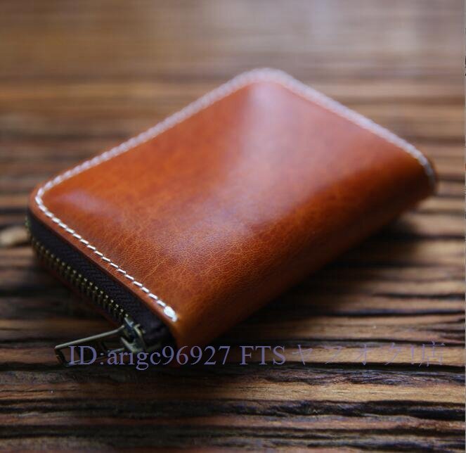 - ★新品レザー男女兼用 メンズ ウォレット 本革 二つ折り財布 大容量 ヌメ革 手縫い 手染め メンズ 革 本革 財布