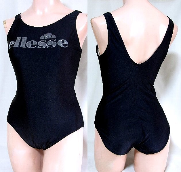 - ★☆ellesse グレーロゴ入り黒フィットスポーツ水着☆★