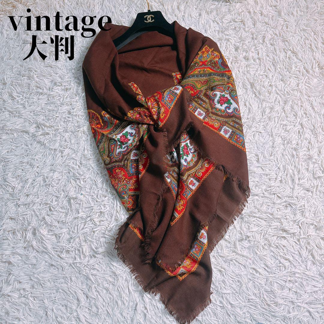 > ストール スカーフ バンダナ ショール 大判 カジュアル 上品 高級感 総柄 マルチカラー ヴィンテージ オールシーズン きれいめ 1点もの