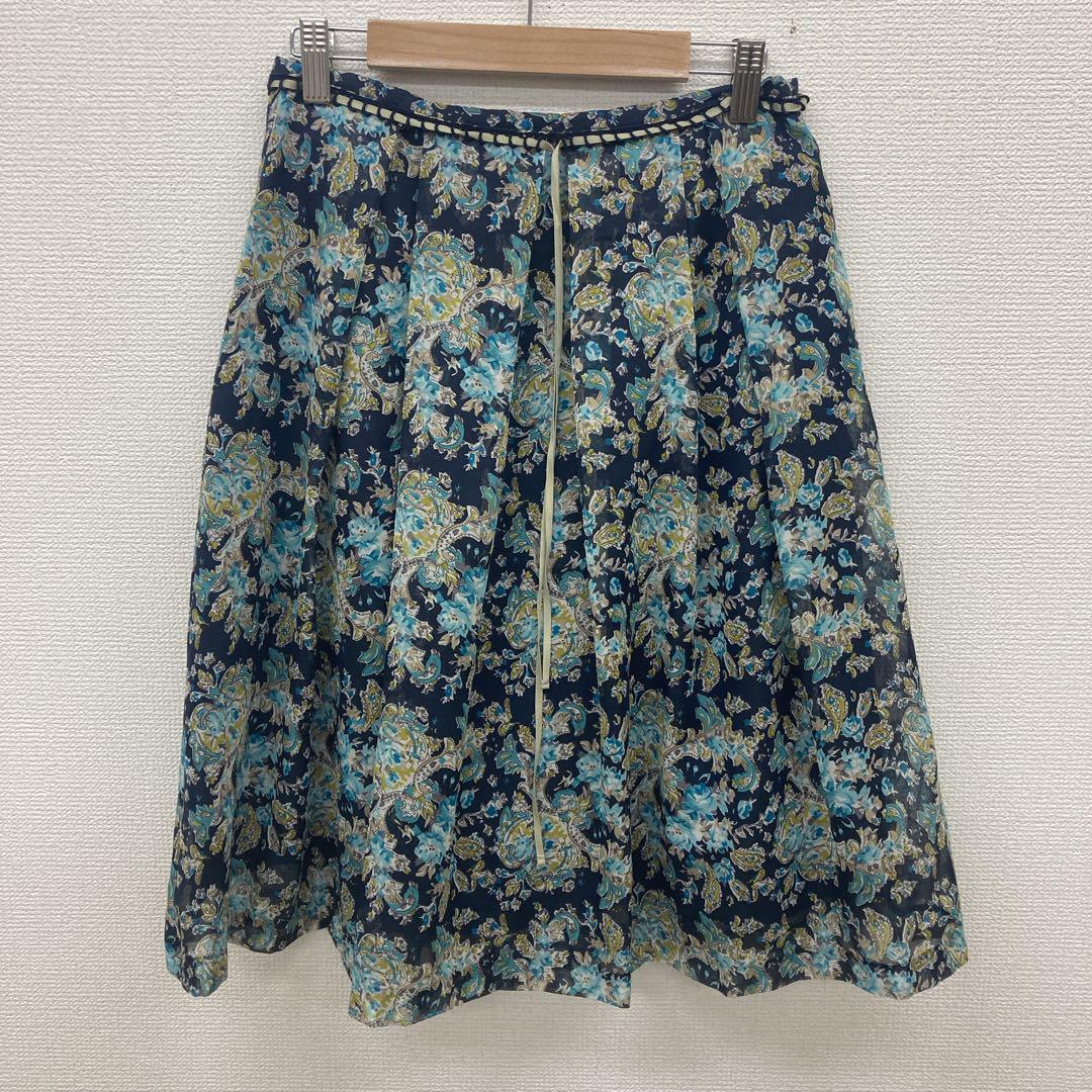 - GRAYISH(38)ひざ丈フレアスカート*花柄総柄*ウエスト紐*ポケット*青