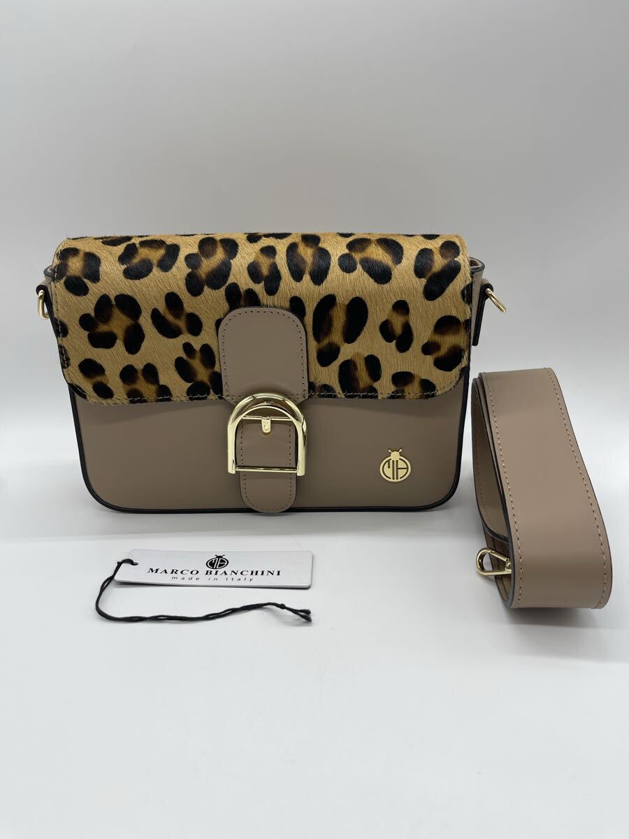 - 【1円スタート】MARCO BIANCHINI マルコビアンキーニ 本革 ショルダーバッグ レオパード柄 イタリア製