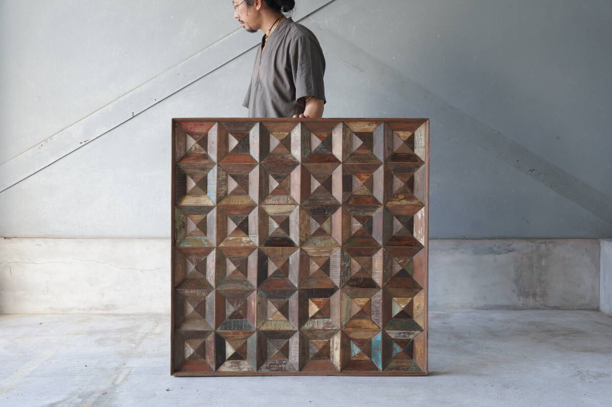 - インド アンティーク 古家具 シャビー オブジェ アート 壁掛け パーテーション 無垢材 古木 朽木 インテリア ディスプレイ チーク材
