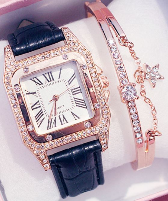 - La ブラックバンド クォーツ時計 星空時計 カジュアルウォッチ レディース腕時 ブレスレットセット 新品未使用品 送料無料 f15
